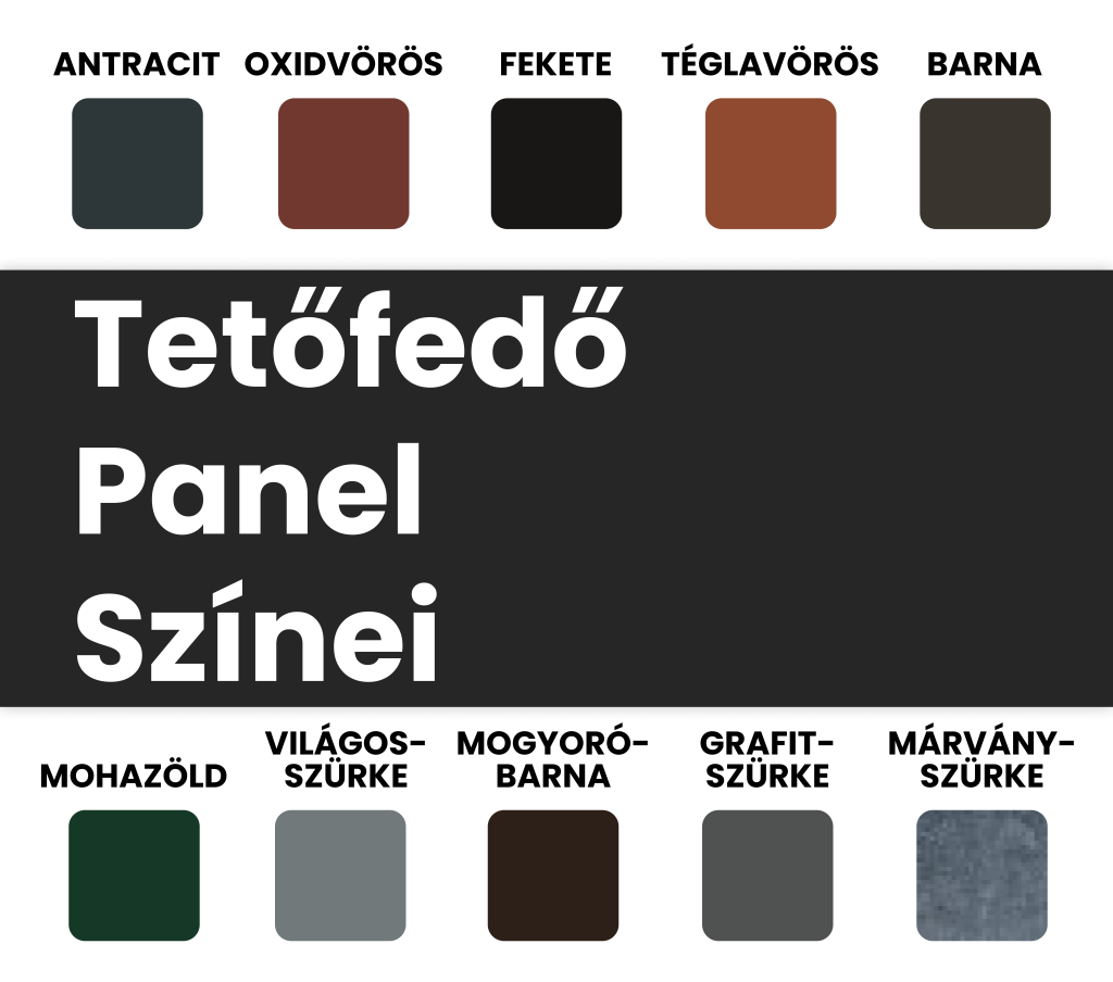 Az FX.12 tetőfedő panel ugyanazokban a színekben érhető el, mint a Tetőfedő rombusz, így szintén könnyen hozzáigazítható az ingatlan egyéb színeihez, illetve stílusához. Kettő méretű panel felhasználásával jár a megoldás kivitelezése, ami mutatós struktúrát kölcsönöz a tetőnek. Ahogy a többi megoldásunkhoz is, olyan alapanyagokat alkalmazunk, amikre 40 év garancia biztosított, így nem kell a közeljövőben számítani arra, hogy további teendő keletkezne a tetővel. Amint elkészült, csak élvezned kell a stílusos megjelenést.